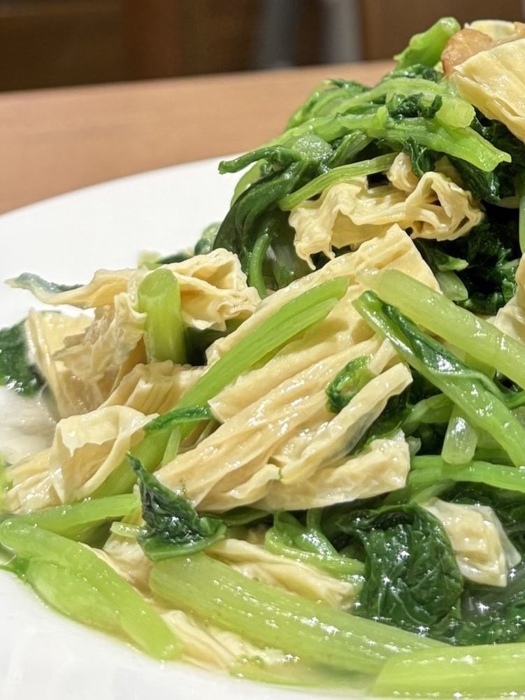 This dish has a stronger alcohol flavor. It need to balance it with other dishes, such as rice. The dish still has a little bit crispy texture. I highly recommended to try yuba.