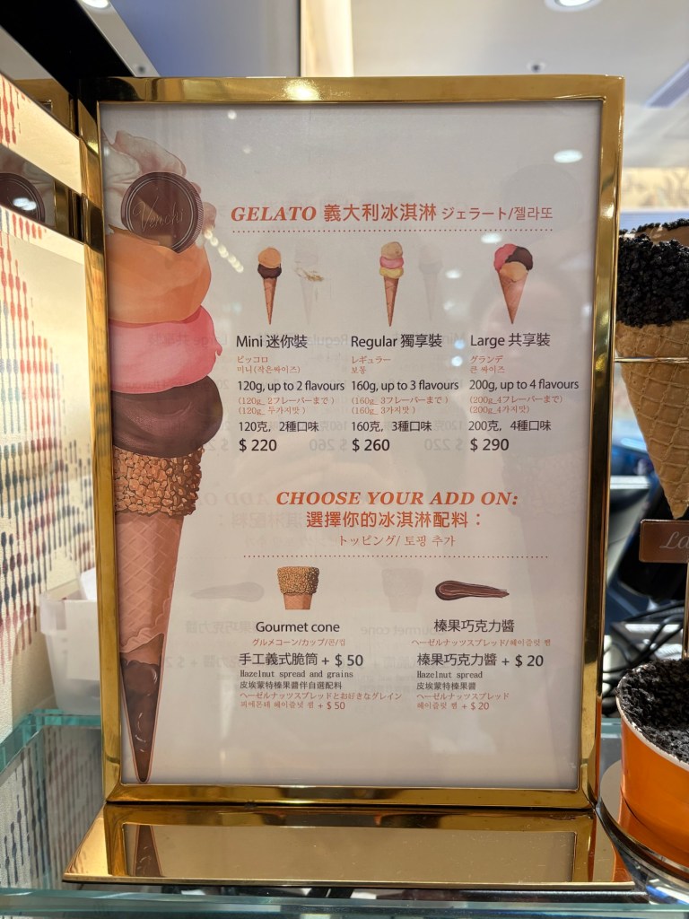 My sister introduced me this Venchi ice cream. This is ice cream made in Taiwan! It has a very dense texture. Unlike regular ice cream, it’s very sticky when scooped it, giving it a nice chewy texture. It’s a bit like a Turkish ice cream. We both ordered the pistachio flavor this time. It’s not over sweet, but the pistachio flavor is quite strong. The biscuits are quite long and thin, and the first bite isn’t like other biscuits. You might even feel the biscuits are about to disintegrate. I highly recommend trying it! Especially if you’re craving dessert after eating at Din Tai Fung.