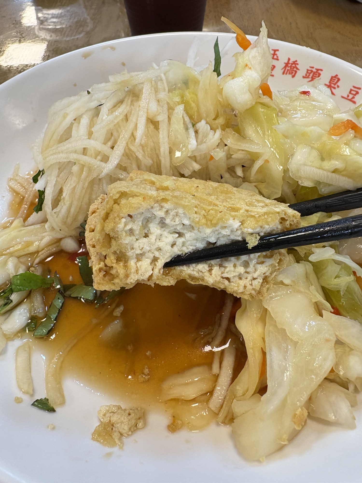 來礁溪必吃有名的玉里臭豆腐,每一塊豆腐外皮都很酥脆,裡面軟嫩,真的忍不住一口接著一口,而且青木瓜跟台式泡菜份量都給得很足夠,吃完整個很滿足耶!