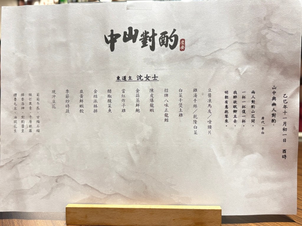 這次是跟家人一起來吃中山對酌,隱藏在農安街上的老宅中,非常適合朋友、情侶或是公司辦活動聚餐,這次是點NT$35,000價位的套餐