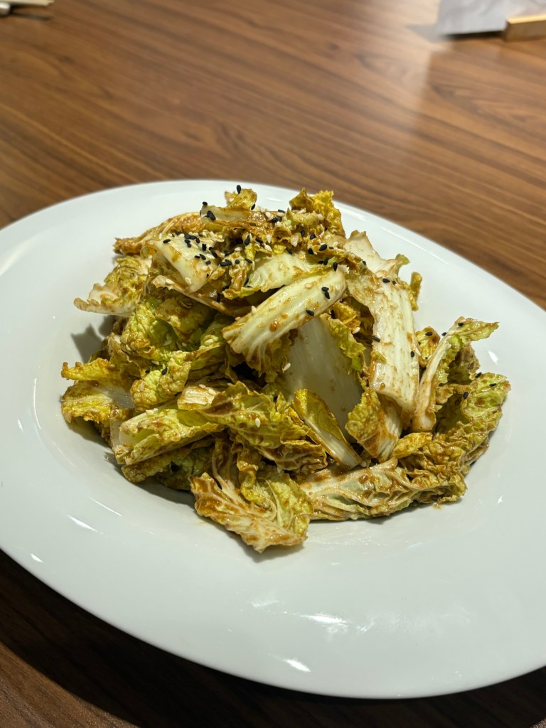 用芥末子搭配的白菜,身為涼拌菜我覺得有點太單調了,味道也只有芥末的味道,整體來說就這一道比較不符合我的胃口