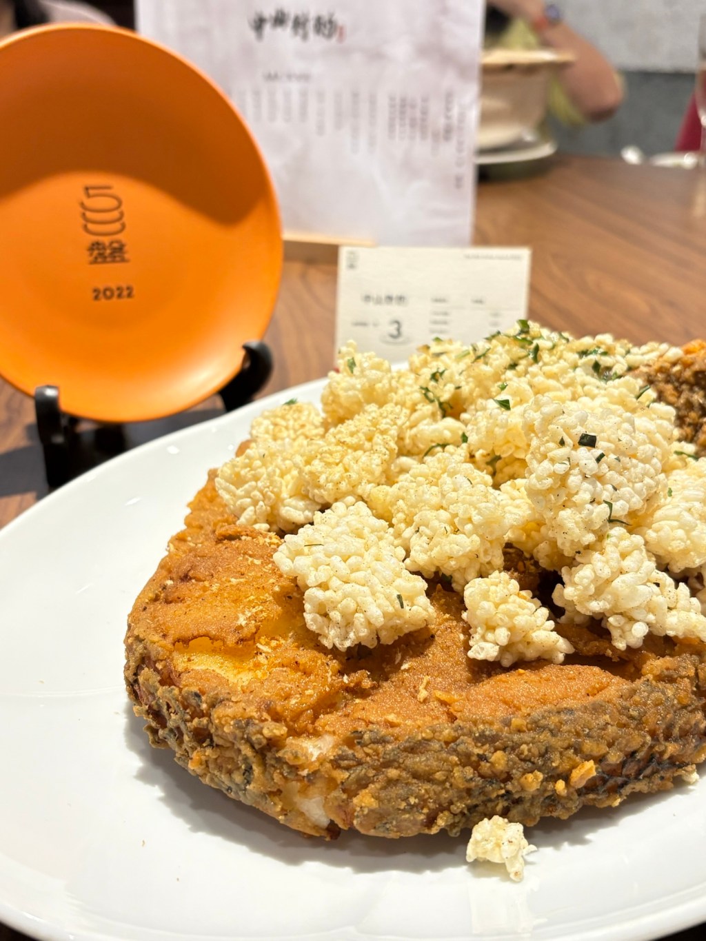 開業一年半就榮登2022年500盤得獎名單,絕對不能錯過這道招牌八味正龍鱘,拍完照之後店員還會協助切塊,酥酥脆脆的外皮加上柔嫩的魚肉跟著上面的餅乾一起吃,完全包含了香味跟口感以及感受到魚的新鮮