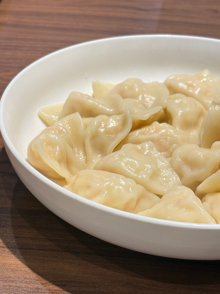 The stir-fried vegetables and shrimp dumplings with chives look simple but are incredibly delicious. I heard that the chef spent a long time selecting the perfect dumpling wrappers, ensuring they won’t break when you pick them up. They’re perfect for enjoying the flavors of shrimp and chives in one bite.