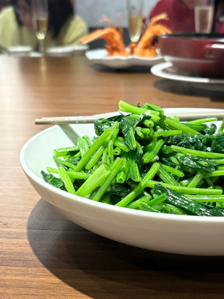 看起來很基本卻很好吃的炒時蔬跟韭黃鮮蝦餃,聽說鮮蝦餃的皮也是廚師挑選了很久才找到適合的外皮,完全不會一夾破掉,很適合一口吃進去享受蝦子跟韭黃的美味